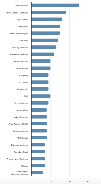 And the VC’s focused on ConTech? Below is a list of the number of deals done by the most active VCs in the ConTech space since 2022.